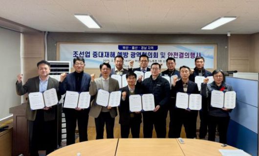 고용노동부 부산고용노동청과 안전보건공단 부산광역본부는 11일 부산지방고용노동청 3층 회의실에서 부산·울산·경남지역 주요 조선사 8개 사 CSO와 함께 조선업 사고 사망 예방을 위한 광역협의회와 안전 결의행사를 개최했다.