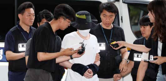서울 은평구 소재 아파트 단지에서 같은 아파트 주민에게 일본도를 휘둘러 살해한 30대 남성 백 모씨가 1일 서울 마포구 서울서부지법에서 열린 살인 혐의 영장실질심사(구속 전 피의자심문)에 출석하고 있다. 사진=뉴시스 |