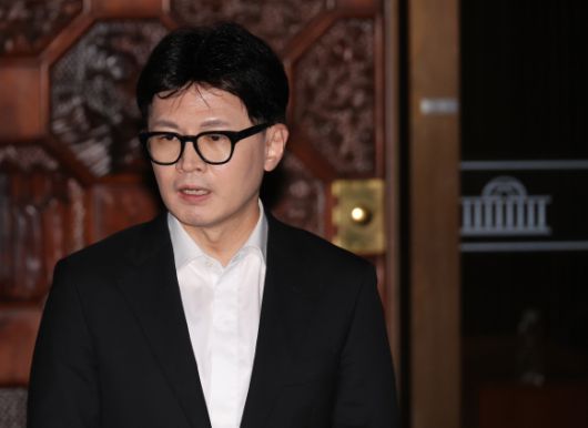 국민의힘 한동훈 대표가 14일 오후 윤석열 대통령 탄핵소추안이 가결된 뒤 의원총회장에서 나와 취재진 질문에 답하고 있다. 2024.12.14. 연합뉴스 |