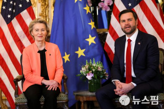 [시드니=뉴스핌] 권지언 특파원 = 도널드 트럼프 미국 대통령의 철강·알루미늄 관세부과 결정에 유럽연합(EU)이 맞대응을 예고한 가운데, 트럼프 취임 후 처음으로 얼굴을 맞댄 J.D. 밴스 미국 부통령과 우르줄라 폰 데어 라이엔 EU 집행위원장은 일단 협력을 언급하며 유화적인 제스처를 취했다.