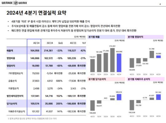 12일 위메이드는 2024년 4분기 컨퍼런스 콜을 진행했다. 김상원 위메이드 전무가 실적 및 사업 방향을 소개한 뒤 질의응답 시간을 가졌다.