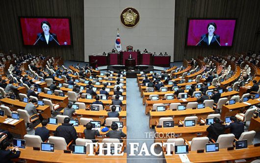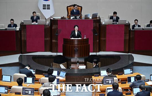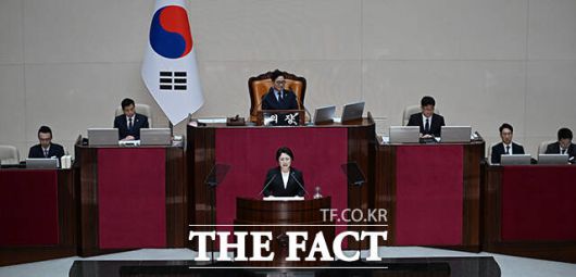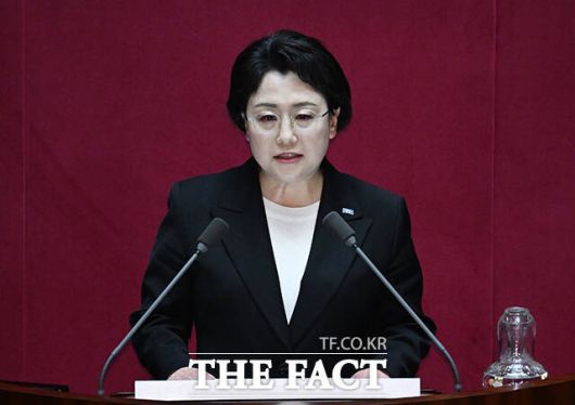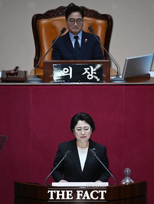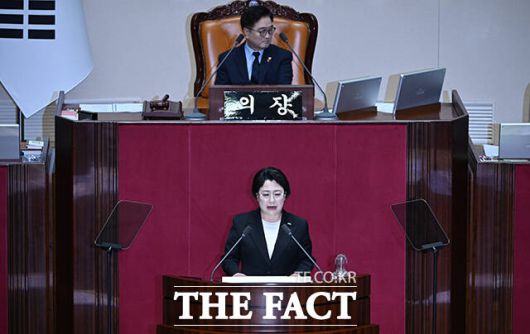 [더팩트ㅣ국회=박헌우 기자] 김선민 조국혁신당 대표 권한대행이 12일 오후 서울 여의도 국회에서 열린 본회의에 참석해 비교섭단체 대표 연설을 하고 있다.
