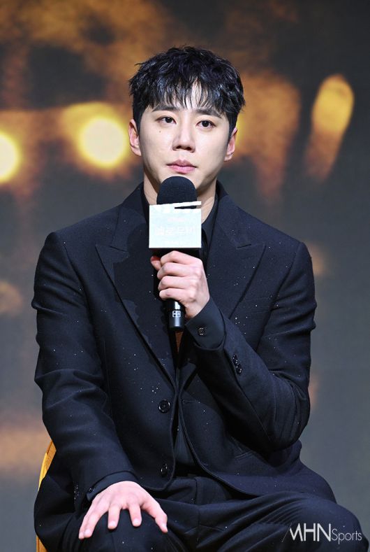 배우 이준영이 12일 오전 서울 종로구 JW 메리어트 동대문 스퀘어 서울에서 진행된 넷플릭스 '멜로무비' 제작발표회에 참석해 질문에 답하고 있다.