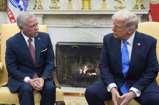 요르단의 압둘라 2세 국왕(왼쪽)이 백악관에서 도널드 트럼프 미국 대통령과 정상회담을 하고 있다. AP연합뉴스 |