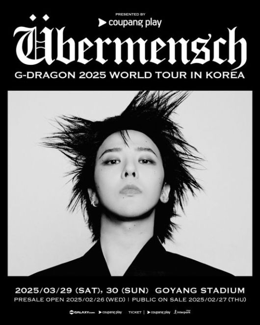 이번 공연은 ‘쿠팡플레이와 함께하는 지드래곤 2025 월드투어 '위버맨쉬' 인 코리아'라는 타이틀로 진행되며, 쿠팡플레이는 한국 콘서트의 프레젠팅 파트너로서 지드래곤만의 독창적인 음악세계와 퍼포먼스를 선보일 예정이다.