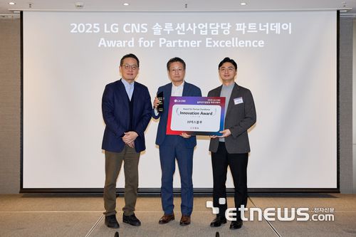 왼쪽부터 최상선 LG CNS 담당, 정시환 넥스블루 본부장, 서준휘 LG CNS 팀장 |