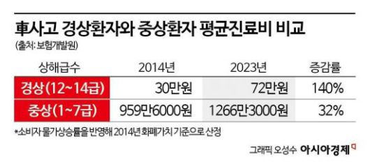정부가 실손보험과 더불어 과잉진료와 의료쇼핑 문제를 야기해온 자동차보험을 개선한다. 대인보험금의 경우 상해등급 12~14급 경상환자에게 향후치료비(합의금) 지급을 금지하는 것으로 가닥이 잡혔다.