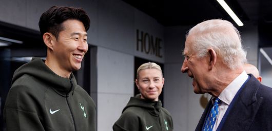 토트넘 홋스퍼 남자팀의 주장인 손흥민이 토트넘을 대표해 영국의 국왕 찰스 3세를 접견했다. 현지 보도에 따르면 찰스 3세는 지난 12일(한국시간) 토트넘과 미국프로풋볼(NFL)이 후원하는 지역 아동 지원 사업 격려 차원에서 토트넘 홋스퍼 스타디움을 방문했다.