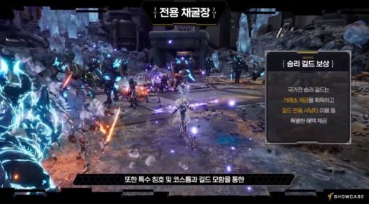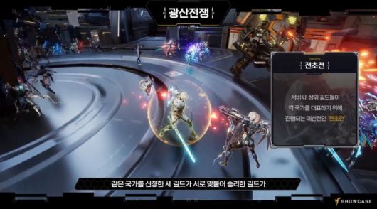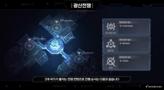 이 중 ‘광산 전쟁’은 원작의 대표 전쟁 콘텐츠 중 하나다. 제한된 자원을 확보하기 위해 3개국의 대표 길드가 경쟁하는 구조다. 먼저 각 국가의 대표 길드를 선출하기 위한 전초전이 진행되며 여기서 승리한 길드가 국가전에 참여한다. 국가전에서는 해당 길드 소속이 아닌 유저들도 용병으로 참가해 활약할 수 있다.