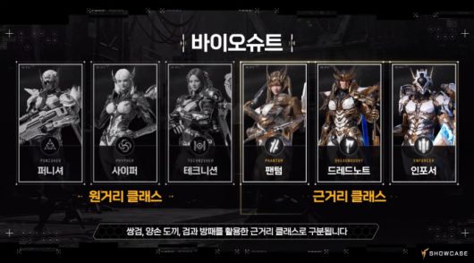 타 게임의 직업에 해당하는 바이오슈트는 총 6개 타입이 준비돼 있다. 이는 총, 포, 드론을 활용하는 원거리 클래스와 쌍검, 양손 도끼, 검과 방패를 활용하는 근거리 클래스로 나뉜다. 슈트는 플레이 도중에도 교체할 수 있으며 전투 기능과 스킬도 슈트에 맞게 자동 변경된다. 무기를 제외한 장비도 모두 그대로 사용할 수 있다. 무기의 경우 도시 상인을 통해 원하는 클래스로 변경을 지원한다.