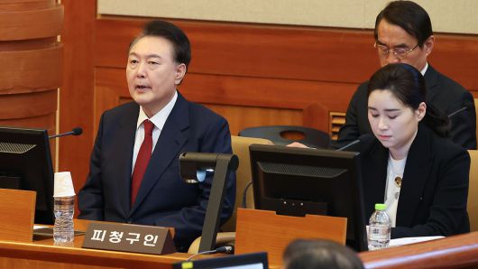 ▲ 윤석열 대통령이 13일 서울 종로구 헌법재판소 대심판정에서 열린 윤석열 대통령 탄핵심판 8차 변론기일에 출석해 있다.