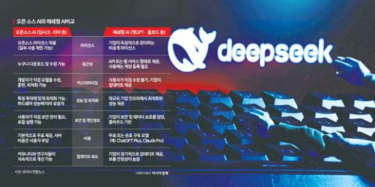 현재 AI 시장에서는 크게 오픈소스 모델과 상용 모델이라는 두 가지 방향으로 발전이 이뤄지고 있다. 오픈소스 AI 진영에서는 메타의 라마를 필두로 다양한 모델들이 공개돼 있다. 딥시크 외에도 프랑스 미스트랄(Mistral), 아랍에미리트의 팔콘(Falcon) 등이 대표적이다. 이미지 생성 분야에서는 스테이블 디퓨전(Stable Diffusion)이 오픈소스 진영을 대표하고 있다. LG그룹도 엑사원을 오픈소스로 공개했다.