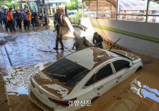 이 아파트단지 주민들은 사고 당일 오전 6시30분쯤 ‘침수가 우려되니 지하주차장 차량을 옮겨달라’는 관리사무소 측의 안내방송에 따라 일시에 지하 주차장으로 갔다가 변을 당했다.