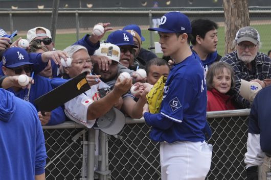 팬들에게 사인하는 LA 다저스 사사키 로키. AP연합뉴스