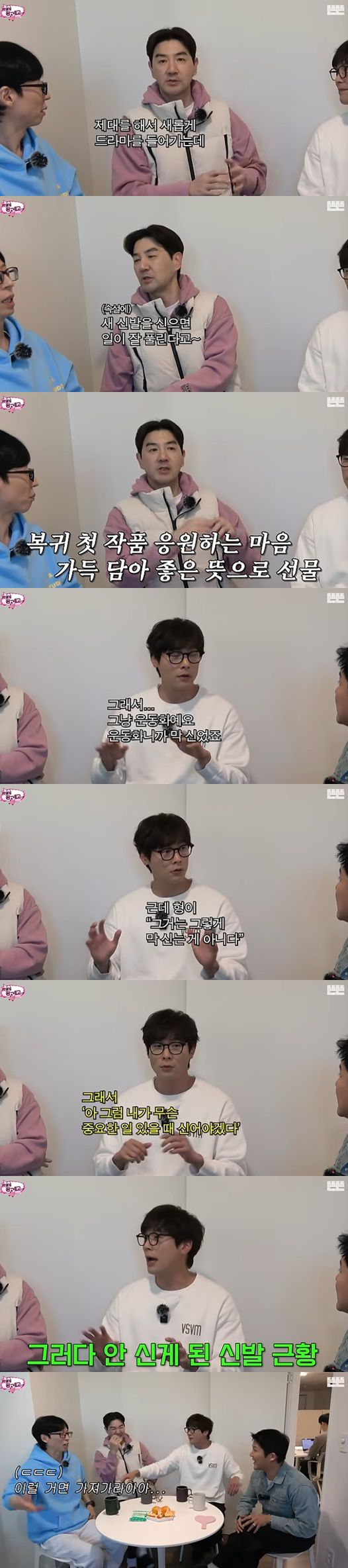 한상진은 "나도 안 신는 명품 신발도 사줬다. 최다니엘이 전역했다. 10년 전 일이다. 새롭게 드라마를 들어가는데 새 신발을 신으면 일을 잘 풀린다고 하더라. 얘가 군대 다녀와서 복귀가 될까 하면서 고민이 많았다. 새롭게 드라마를 하니 대박 났으면 좋겠다 싶었다. 한 6개월 지나니 그걸 슬리퍼처럼 끌고 다닌다"라며 웃었다.
