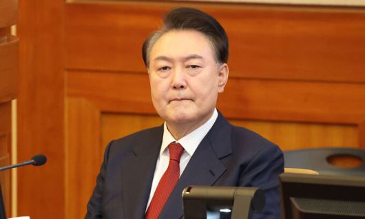 윤석열 대통령이 13일 서울 종로구 헌법재판소에서 열린 탄핵심판 8차 변론에 출석해 있다. 사진공동취재단 |