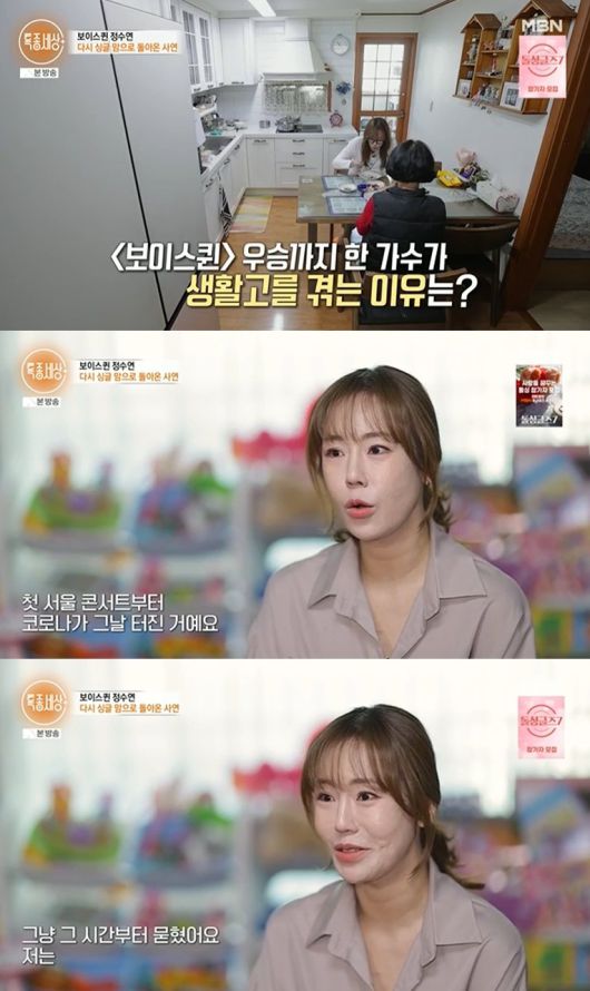 13일 MBN '특종세상'에는 지난 2019년 '보이스퀸'으로 이름을 알린 가수 정수연이 출연했다.