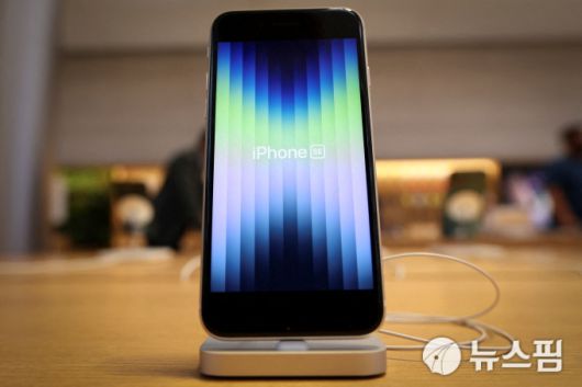 미국 뉴욕 맨해튼 5번가에 위치한 애플 스토어에 진열된 신형 아이폰 SE. 2022.03.18 [사진=로이터 뉴스핌] |