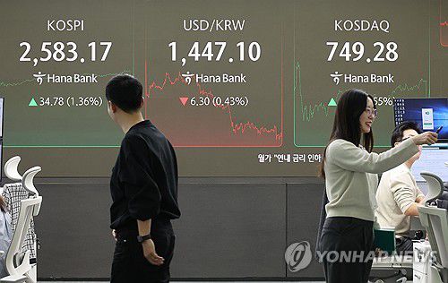 전날 코스피 지수는 전장보다 34.78포인트(1.36%) 오른 2,583.17로 장을 마감하며 3거래일 연속 올랐다.