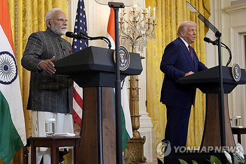 (워싱턴=연합뉴스) 강병철 특파원 = 도널드 트럼프 미국 대통령은 13일(현지시간) "오랜 (무역) 불균형을 해소하기 위해 인도와 협상을 진행키로 했다"고 말했다.