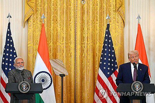 (워싱턴=연합뉴스) 강병철 특파원 = 도널드 트럼프 미국 대통령이 13일(현지시간) 상호 관세 부과 방침을 밝힌 가운데 미국과 인도가 미국의 무역 적자 문제 해소 등을 위해 무역 협정 체결을 목표로 협상에 나서기로 했다.