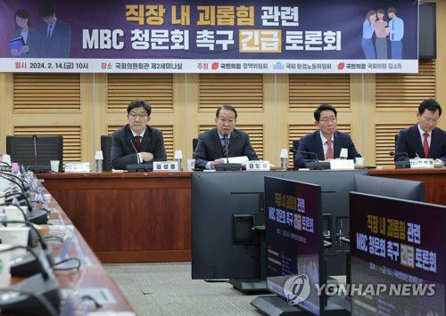 국민의힘 정책위원회와 김소희 의원은 이날 국회 환경노동위원회 소속 의원들과 함께 '직장내 괴롭힘 관련 MBC 청문회 촉구 긴급 토론회'를 열어 오 씨가 생전 직장 내 괴롭힘에 시달렸다는 의혹을 규명하기 위해 국회 차원의 청문회를 열어야 한다고 촉구했다.
