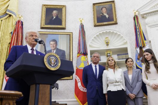 도널드 트럼프 미국 대통령이 13일 백악관 오벌 오피스에서 로버트 F. 케네디 주니어의 보건복지부 장관 취임 선서에 앞서 연설하고 있다. 워싱턴/EPA 연합뉴스 |