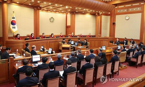 탄핵심판 8차 변론(서울=연합뉴스) 지난 13일 서울 종로구 헌법재판소 대심판정에서 윤석열 대통령 탄핵심판 8차 변론이 열리고 있다. 2025.2.13 [사진공동취재단] photo@yna.co.kr ▶제보는 카카오톡 okjebo▶연합뉴스 앱 지금 바로 다운받기~▶네이버 연합뉴스 채널 구독하기<저작권자(c) 연합뉴스, 무단 전재-재배포, AI 학습 및 활용 금지>