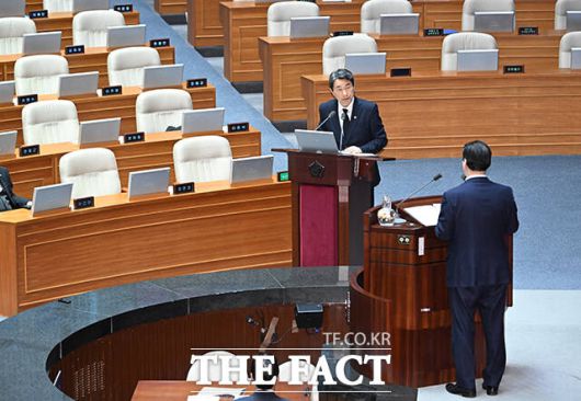 [더팩트ㅣ국회=박헌우 기자] 이주호 사회부총리 겸 교육부 장관이 14일 오후 서울 여의도 국회에서 열린 교육·사회·문화 분야 대정부질문에 참석해 김종양 국민의힘 의원의 질의에 답하고 있다.