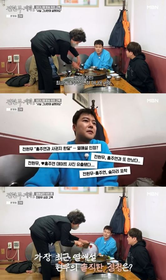 이에 전현무는 "그 친구(홍주연)에게 미안했다"고 입을 열었다. 이어 "나는 이미 만신창이지만, 상대방에게 괜찮냐고 물어봤을 때 '괜찮다'고 하면 그냥 둔다"며 "열애설을 통해 신인 아나운서가 주목을 받으면 좋은 것"이라고 말했다.