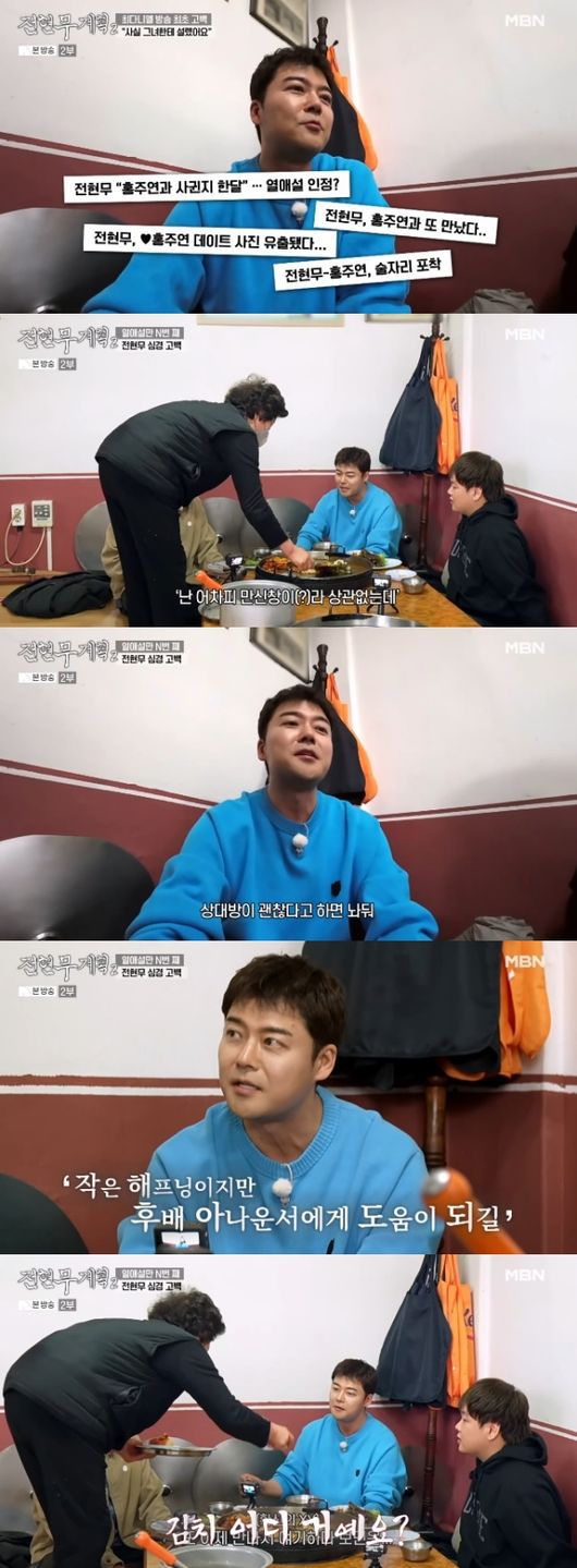 14일 방송된 MBN, 채널S 예능프로그램 '전현무계획2'에서는 20살 연하의 후배 아나운서 홍주연과 열애설 및 결혼설을 언급하는 전현무의 모습이 그려졌다.
