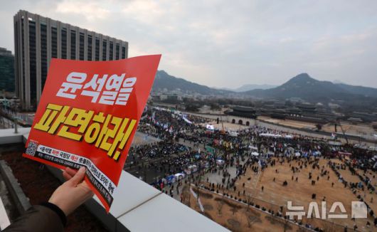 [서울=뉴시스] 고범준 기자 = 15일 서울 종로구 광화문 인근에서 윤석열 즉각 퇴진! 사회대개혁! 범시민대행진 11차 집중행동이 진행되고 있다. 2025.02.15. bjko@newsis.com