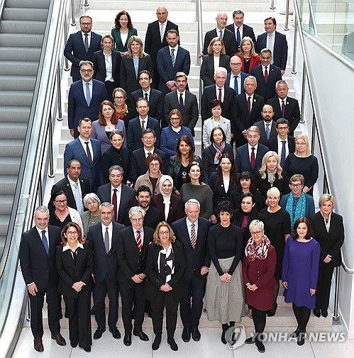 (서울=연합뉴스) 이기일 보건복지부 1차관이 지난 14일 프랑스 파리에서 열린 2025 OECD 사회정책장관회의에 참석해 기념 촬영을 하고 있다. 2025.2.15 [보건복지부 제공. 재판매 및 DB 금지]