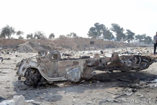 [만비즈=신화/뉴시스] 3일(현지 시간) 시리아 만비즈에서 차량 폭탄 테러가 발생해 현장에 잔해가 남아 있다. 시리아 임시 정부는 폭탄 테러 책임자를 처벌할 것을 다짐하면서 최소 20명이 숨지고 여러 명이 부상했다고 밝혔다. 2025.02.04. /사진=민경찬 |