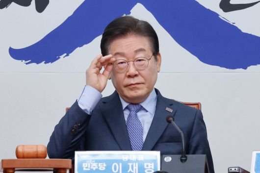 이재명 더불어민주당 대표가 14일 오전 서울 여의도 국회에서 열린 최고위원회의에 참석해 안경을 고쳐쓰고 있다. 뉴스1 |
