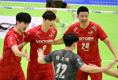 한국전력의 임성진(18점)과 윤하준(15점)은 공격에 힘을 보탰고, 이날 역대 1호 통산 1천300블로킹을 돌파한 베테랑 미들 블로커 신영석(11점)도 두 자릿수 득점으로 승리를 거들었다.