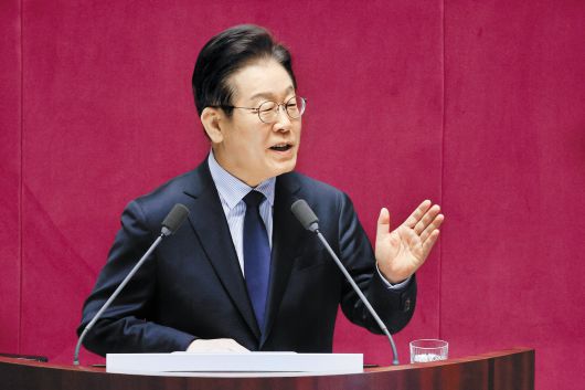 이재명 더불어민주당 대표가 지난 10일 서울 여의도 국회 본회의장에서 '회복과 성장'을 주제로 제422회 국회(임시회) 교섭단체 대표연설을 하고 있다./뉴스1