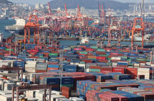 부산항 신선대·감만·신감만부두에 수출입 화물이 쌓여있는 모습. [사진=연합뉴스] |
