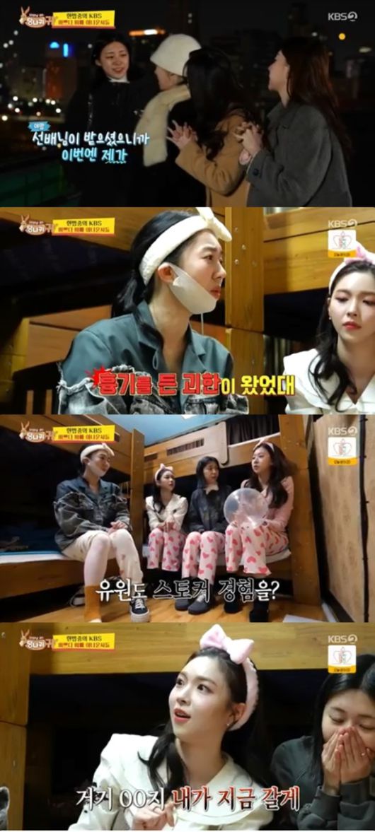 홍주연은 버스로 출퇴근을 하던 시절 스토커가 정류장에 있어서 버스를 못 탔었다고 밝혀 모두를 놀라게 했다.