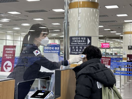 여행자가 호흡기 감염병 증상 확인을 하고 있다. 질병청 제공 |