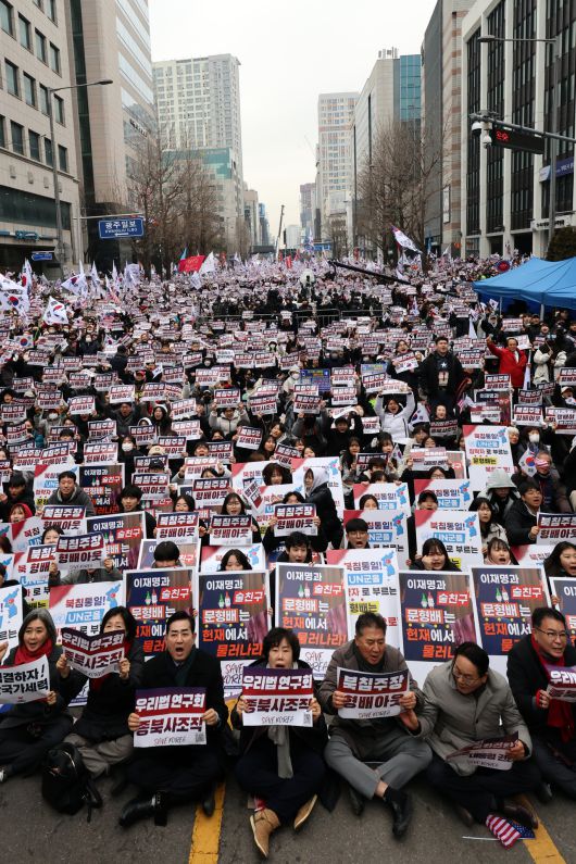 15일 오후 광주 동구 금남로에서 개신교 단체 세이브코리아가 개최한 윤석열 대통령 탄핵 반대 및 석방 촉구 국가비상기도회에서 참가자들이 구호를 외치고 있다. [연합] |