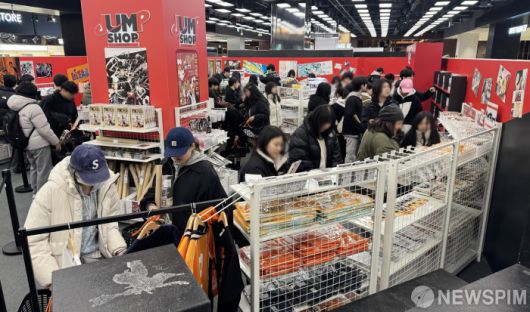 [서울=뉴스핌] 이형석 기자 = 17일 오전 서울 여의도 더현대 서울에 마련된 점프샵 인 서울 팝업스토어를 찾은 시민들이 매장을 둘러보고 있다. 점프샵 인 서울 팝업스토어에서는 주간 소년 점프의 인기 캐릭터를 만나 볼 수 있다. 2025.02.17 leehs@newspim.com