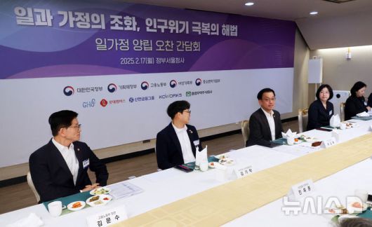 이 자리엔 워킹맘·워킹대디, 경력단절여성, 일·생활 균형 우수기업 대표 등 민간 정책 수요자 9명이 참석했다. 김문수 고용노동부 장관, 신영숙 여성가족부 차관, 김성섭 중소벤처기업부 차관 등 관계 부처 장·차관들도 함께 했다.