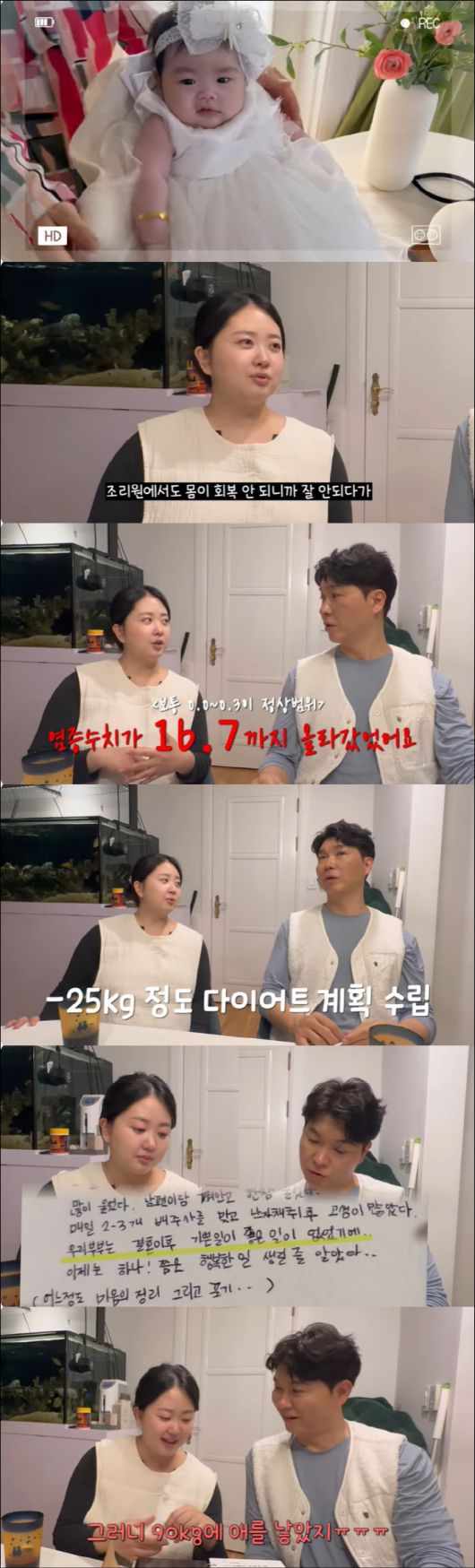 전복이의 출산 일기를 꺼내온 김다예. 출산 일기에는 힘들었던 시험관 임신 과정도 적혀있었다. 김다예는 피검사 수치가 2배 이상 오르는 더블링에 실패해 좌절했던 때에 대해 적으며 "우리 부부는 결혼 이후 기쁜 일, 좋은 일이 없었기에 이제는 하나쯤은 행복한 일이 생길 줄 알았다"고 실망감을 드러냈다.