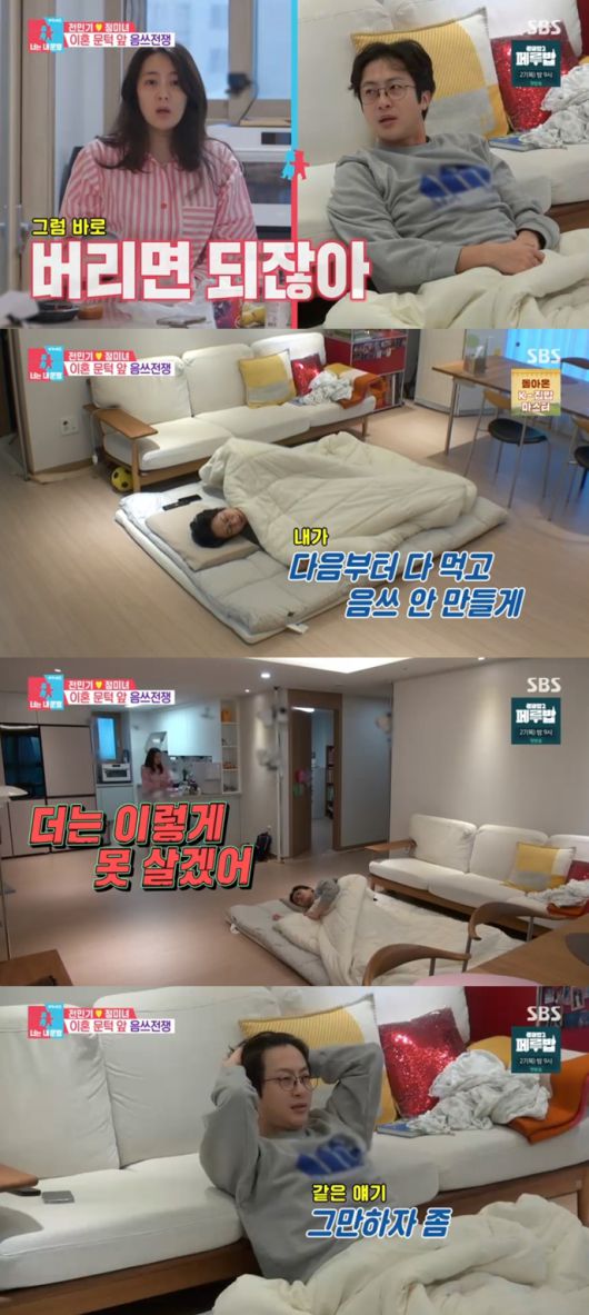 정미녀는 "천엽, 닭발 이런건 잘 먹으면서 음식 쓰레기는 왜 못 버리냐"며 불만을 토로했다. 그럼에도 전민기는 드러누우며 "다음부터는 다 먹고 안 남길게"라고 했다.