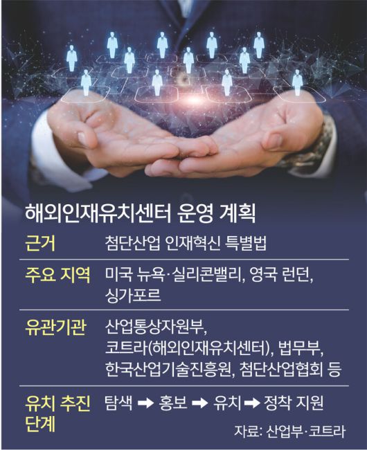 해외인재유치센터는 지난달부터 시행된 ‘첨단산업 인재 혁신 특별법’을 근거로 설립됐다. 특별법상 지원 대상인 첨단산업은 △반도체 △바이오 △디스플레이 △배터리 네 분야로, 향후 방산과 로봇 등 다른 분야까지 첨단산업 육성 특별법에 따라 확대될 전망이다.