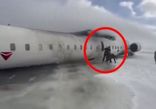 17일(현지시간) 오후 2시 45분경 미국 미니애폴리스에서 출발한 델타항공 자회사 엔데버에어 여객기(4819편)가 캐나다 토론토 피어슨 국제공항 활주로에 착륙하는 과정에서 사고가 발생했다. 뒤집힌 동체에서 걸어 나오는 생존자들. 출처 엑스