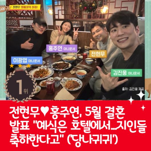 1위 : 전현무♥홍주연, 5월 결혼 발표 "예식은 호텔에서...지인들 축하한다고" ('당나귀귀')