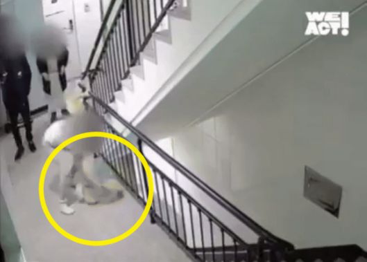 위액트가 공개한 폐쇄회로(CC)TV 영상을 보면 부모와 아들, 흰색 작은 강아지 한 마리가 보인다. 영상 속 여성이 도망치려는 개를 한 손으로 붙잡아 들어 올리자 옆에 있던 남성이 강아지를 순식간에 창문 밖으로 던진다. 그 모습을 본 아이는 황급히 계단을 뛰어 내려간다.