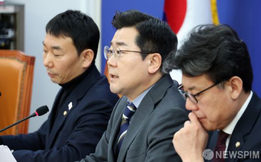 [서울=뉴스핌] 정일구 기자 = 박찬대 더불어민주당 원내대표가 18일 오전 서울 여의도 국회에서 열린 원내대책회의에서 모두발언을 하고 있다. 2025.02.18 mironj19@newspim.com